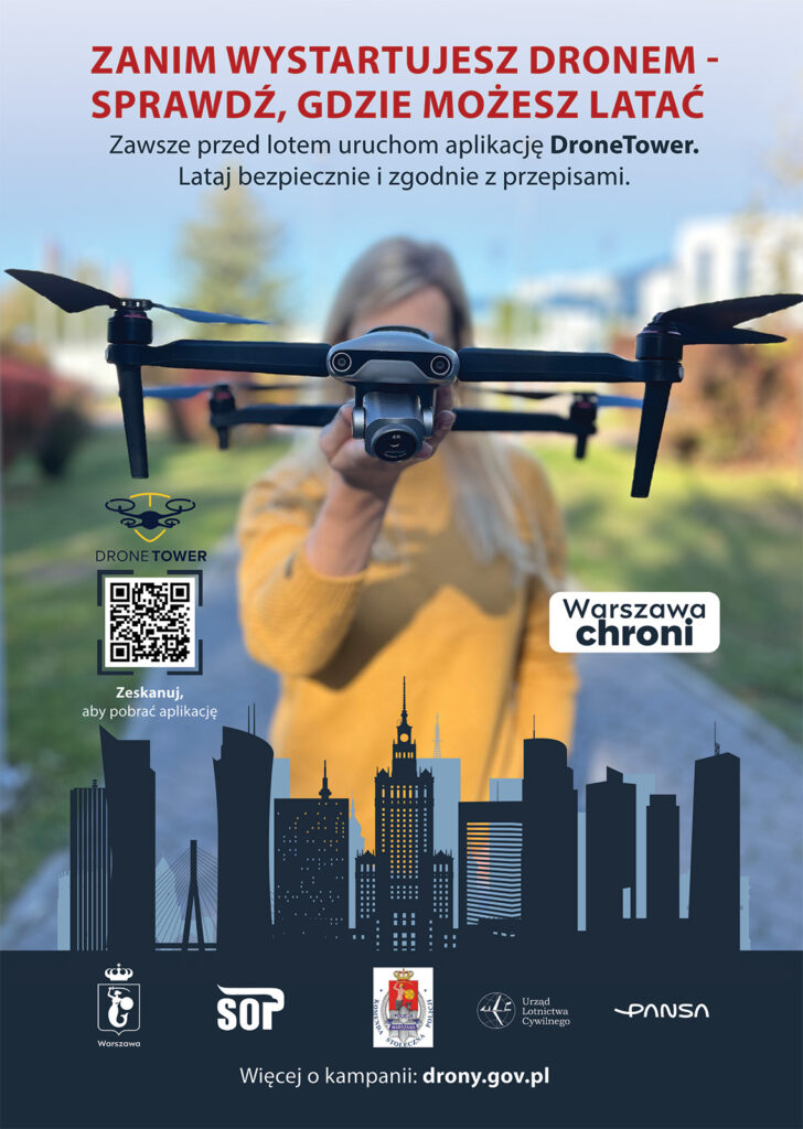 Urząd m.st. Warszawy, Urząd Lotnictwa Cywilnego, Polska Agencja Żeglugi Powietrznej, Komenda Stołeczna Policji oraz Służba Ochrony Państwa ponownie łączą siły w kampanii „Zanim wystartujesz, sprawdź dronem, gdzie możesz latać”. Akcja ma charakter edukacyjno-prewencyjny i potrwa przez cały listopad. Jej celem jest zwiększenie bezpieczeństwa mieszkańców i turystów odwiedzających Warszawę, ograniczenie liczby nielegalnych lotów dronami oraz wzrost świadomości, że odpowiedzialne latanie zaczyna się od znajomości zasad i przepisów.