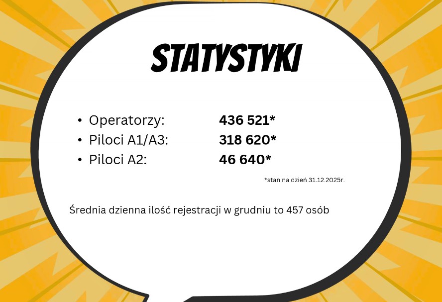 - certyfikat A1/A3 uzyskało 91 129 pilotów