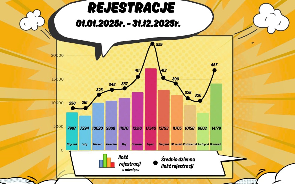 - średnia dzienna ilość rejestracji w grudniu: 457.