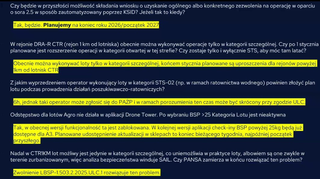 Odpowiedzi na pytania zadane PAŻP na poprzednim Briefingu Dronowym ULC: