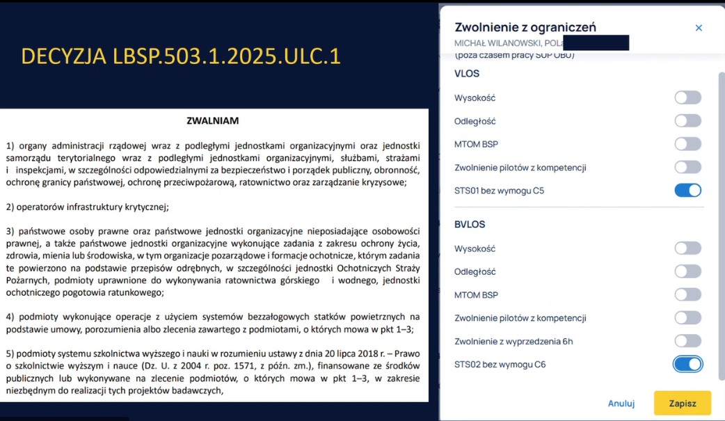 Odstępstwo dla podmiotów prywatnych: jedno już jest – odstępstwo od KON. Niestety odstępstwo z C5/C6 dla podmiotów prywatnych/komercyjnych będzie trudne do przeforsowania w EASA.