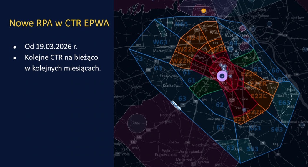 Dla latających w Warszawie – od 19.03.2026 r. będą nowe RPA w CTR EPWA. Kolejne CTR będą zmieniane w kolejnych miesiącach.