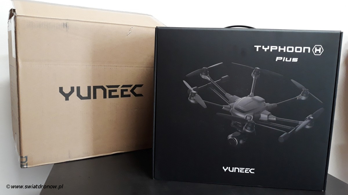 Podobnie jak w przypadku Typhoon H520 nowy model Typhoon H Plus ma takie samo pudełko – dobrze przemyślane pod kątem transportowania i przechowywania w nim wszystkich niezbędnych rzeczy do lotu. W środku znajdziemy: